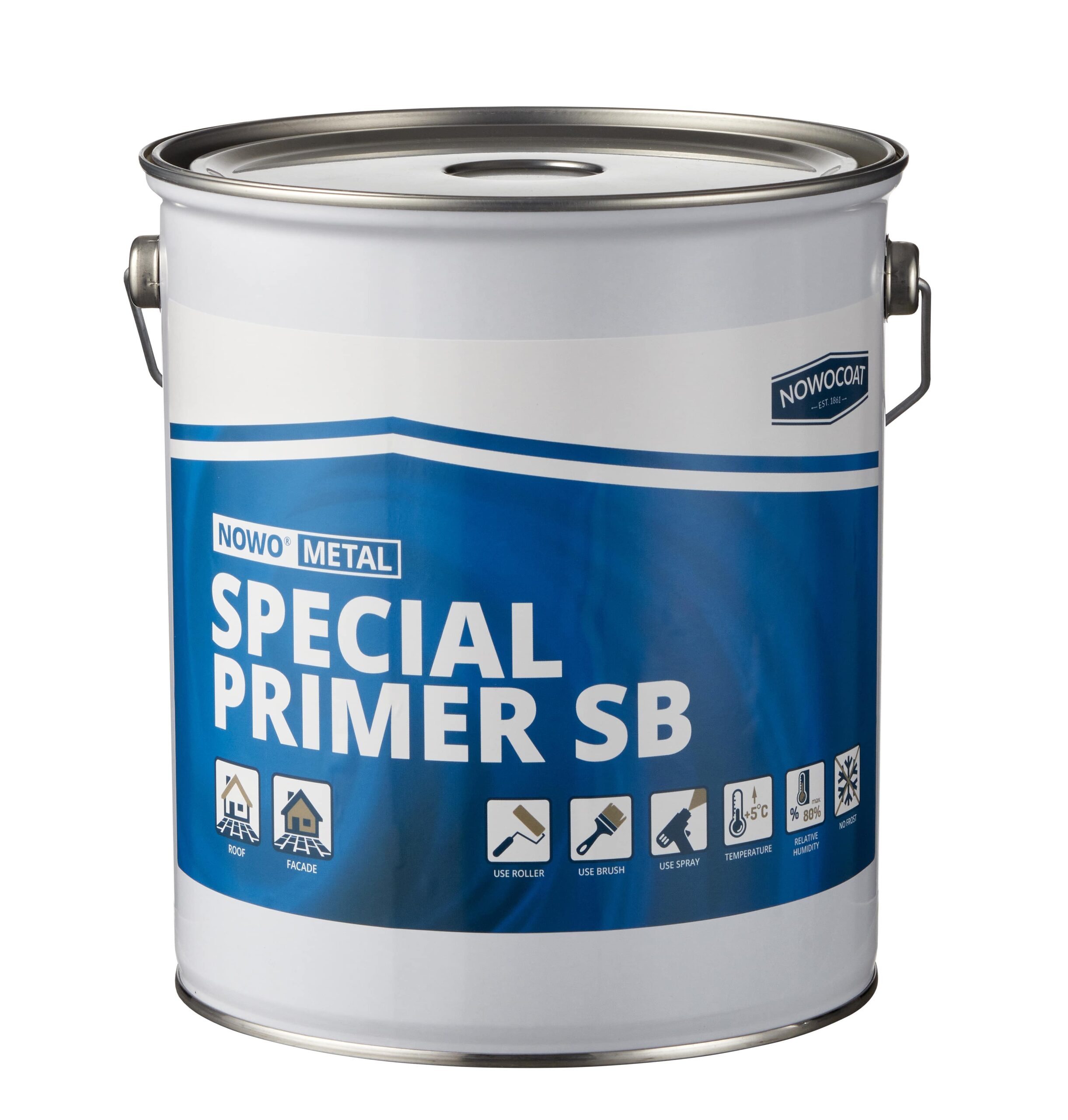 Do stosowania jako podkład na powierzchnie metalowe, gdzie przyczepność jest utrudniona z powodu rdzy, uszkodzeń lub powierzchni specjalnych. Polecany jako podkład pod Nowo Metal 2-K. PU Combi SB do tworzenia klas korozji. Przed aplikacją powierzchnia musi być wolna od zanieczyszczeń, sucha i całkowicie oczyszczona z brudu, mchu, glonów, luźnej rdzy i resztek farby. Rdzawe plamy wymagają zastosowania Nowo Metal Special Primer SB. Przed aplikacją użyć Nowo Metal Cleaner.